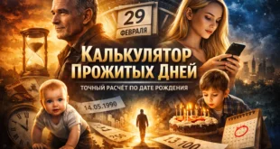 Точный калькулятор возраста по дате рождения: прожитые дни, возраст в годах, месяцах и днях, выходные, следующий день рождения и честный расчёт.