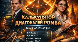 Узнайте большую и меньшую диагональ ромба, сторону, площадь и угол. Онлайн-калькулятор с формулами, примерами и визуализацией без ручных расчётов.